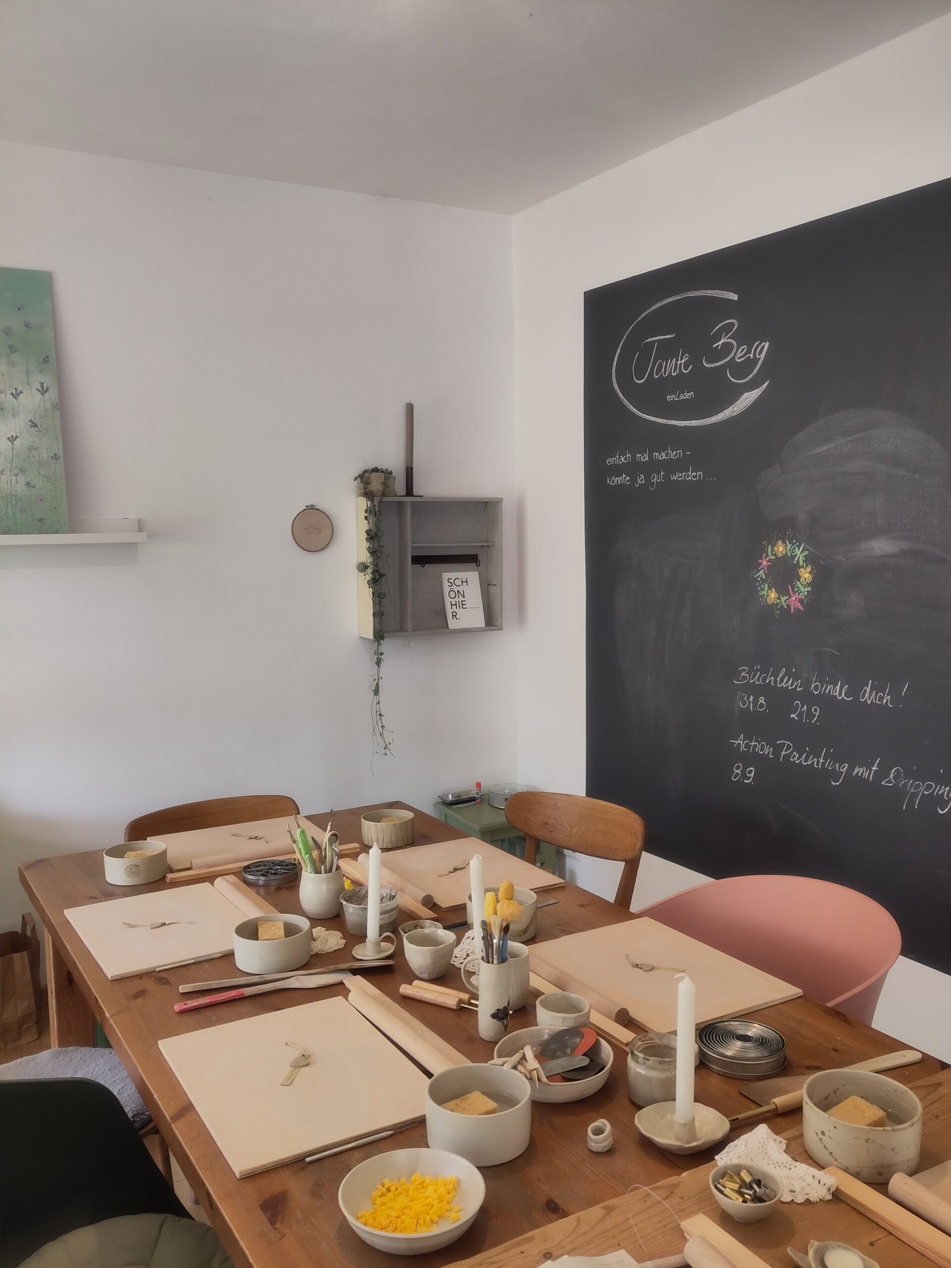 Kommt wenn möglich gern schon ein paar Minuten früher, um in Ruhe ankommen zu können bevor es mit dem Töpfern losgeht.